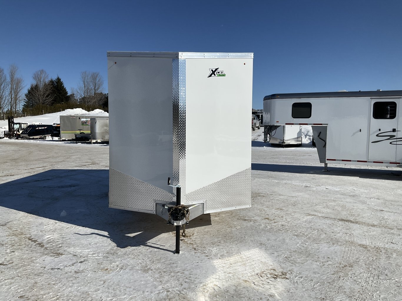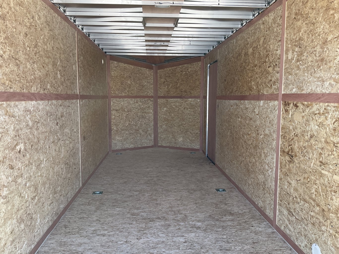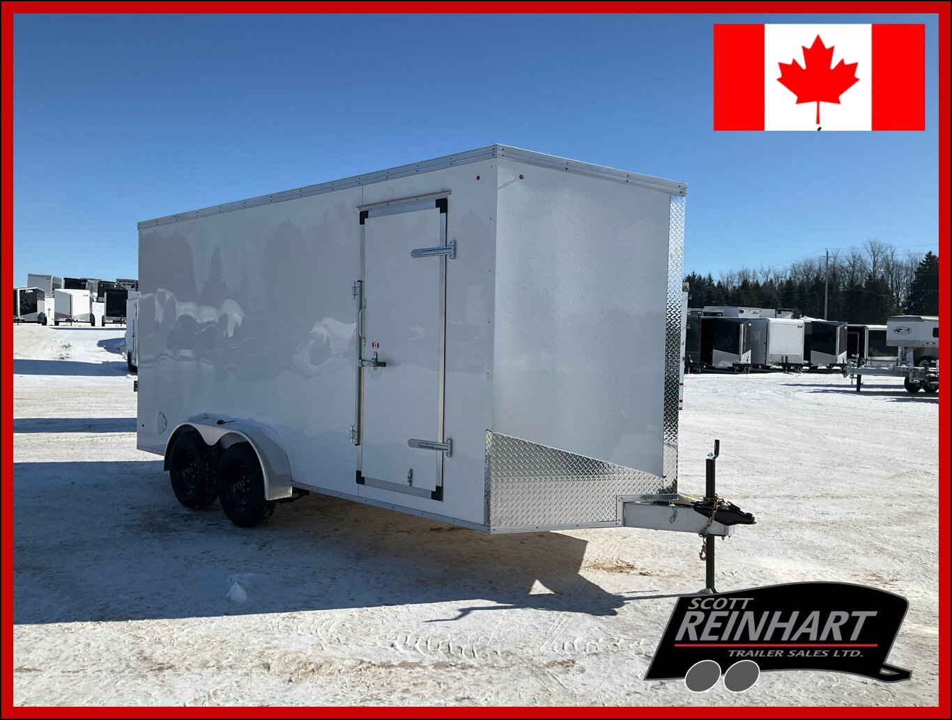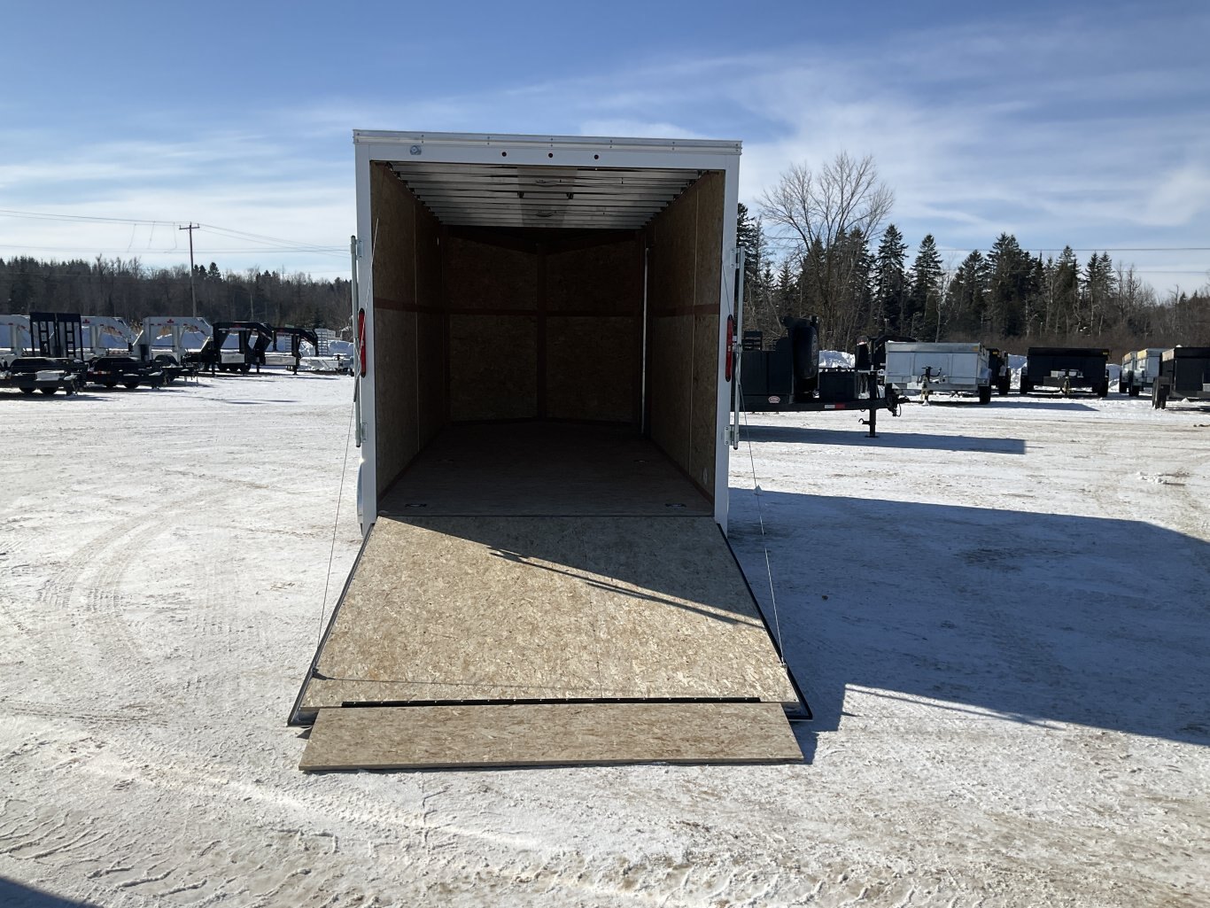 7000LB GVWR, 2 3500LB Spring Drop Axle with EZ Lube Hubs, Electric Brakes, 15 Inch Radial Tires, Electric Brakes, 2' Sloped V-Nose, 7' Tall, .030 White Screwless Exterior, 32" Side Man Door, Rear Ramp Door with Cable Assist, 3/8" Wood Lined Walls, 3/4" Rainblock Wood Floor, Seamless Aluminum Roof, 16" On Centre Walls/Floor/Roof, 2 Wall Vents, 12V Dome Light and Switch, 6 D-Ring Tie Downs, ATP Stone Guard, 2-5/16" Ball Coupler, A-Frame Tongue Jack with Sand Pad, Sealed LED Lighting