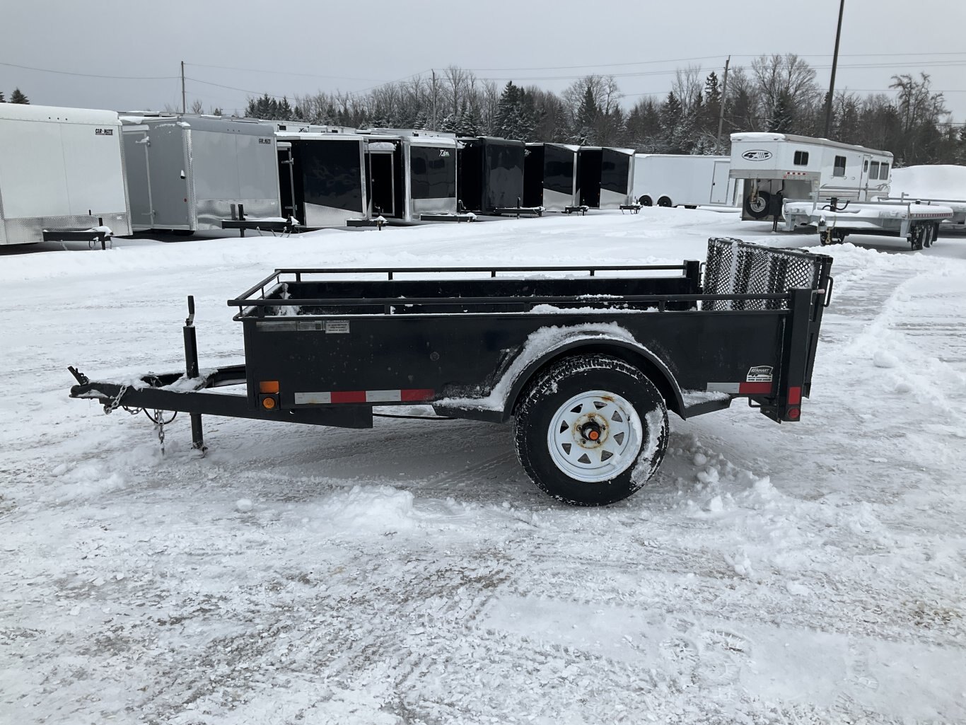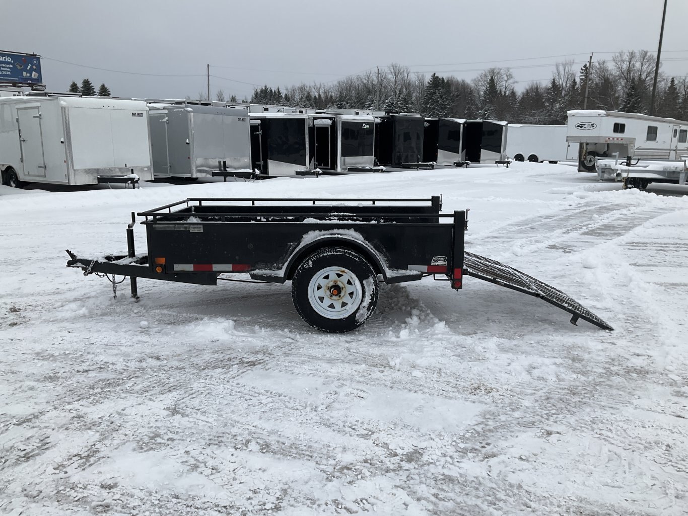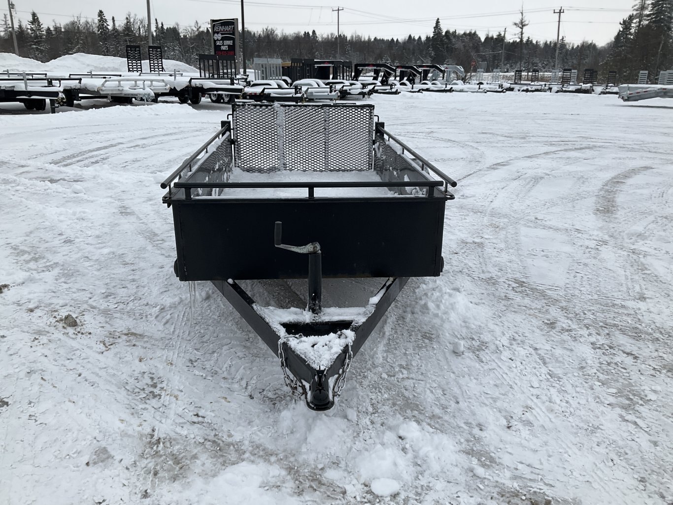 2990LB GVWR, 3500LB Spring Axle with EZ Lube Hubs, 15" Radial Tires, Treated Plank Deck, Solid Sides with Top Tie Rail. Rear Bi-Fold Mesh Ramp, 4 HD D-Ring Tie Downs, Spare Tire Mount, Tongue Jack with Sand Pad, Sealed Wiring Harness, Sealed LED Lighting