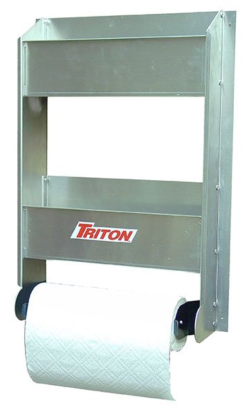 2 shelves for oils and supplies, plus paper towel holder. Mounts to wall studs, or combo wall.