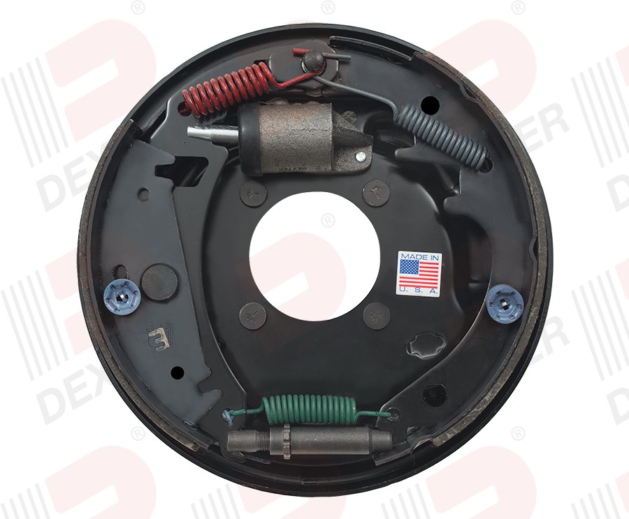 Premium Dexter 10" x 2-1/4" electric brake assembly with 4 bolt mounting pattern. Dust shield is included. Uni servo. Free backing. (Fits most 3,500lb axles)