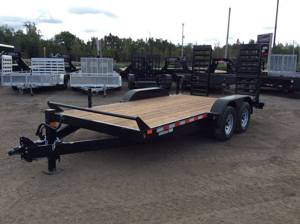 10,800LB GVWR, 2 5200LB Axles with Easy Lube Spindles, Slipper Spring Suspension, 15 Inch Radial Tires, Electric Brakes on Both Axles, 24 Inch Deck Height, 2' Beavertail with Wood Floor, 5' Spring Assisted Upright Ramps, Pressure Treated Wood Floor, HD Treadplate Fender Upgrade, 52 Inch Tongue Length, Stake Pockets and Rub Rails, Spare Tire Mount, Rubber Mount Sealed LED Lighting, Full Sealed Wire Harness, Powder Coat Painted with Scorpion Stone Guard on Front