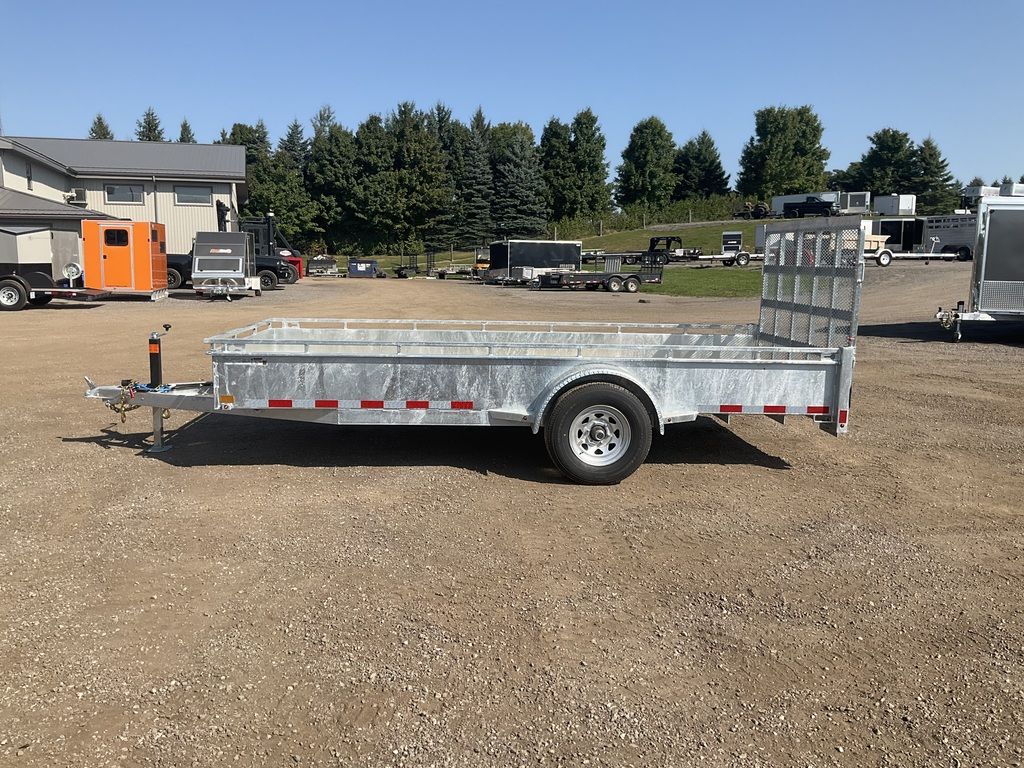 5200LB GVWR, 5200LB Axle with Easy Lube Spindles, Slipper Spring Suspension, 15 Inch Radial Tires, Electric Brakes, 2000LB A-Frame Jack, 17 Inch Deck Height, 16 Inch Solid Steel Sides and 3 Inch Tie Rail, 4' Straight Ramp with Mesh, Pressure Treated Wood Floor, 4 Welded in D-Rings, Spare Tire Mount, Rubber Mount Sealed LED Lighting, Full Sealed Wire Harness, Galvanized