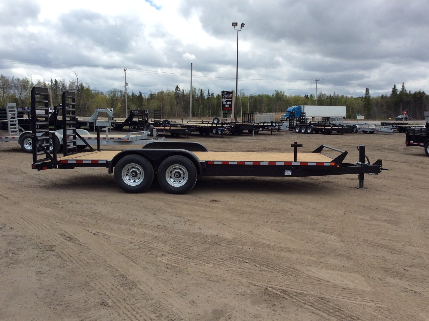 15,120LB GVWR, 2 7000LB Axles with Easy Lube Spindles, Slipper Spring Suspension, Electric Brakes on Both Axles, 16 Radial Tires, 12,000LB Drop Leg Jack, 24 Inch Deck Height, 2' Beavertail with Wood Floor, 2 5' Spring Assisted Upright Ramps, Pressure Treated Wood Floor, 52" Tongue Length, Stake Pockets and Rub Rails, Spare Tire Mount, Rubber Mount Sealed LED Lighting, Full Sealed Wire Harness, Diamond Plate Fenders, Scorpion Stone Guard on the Front, Powder Coat Painted |