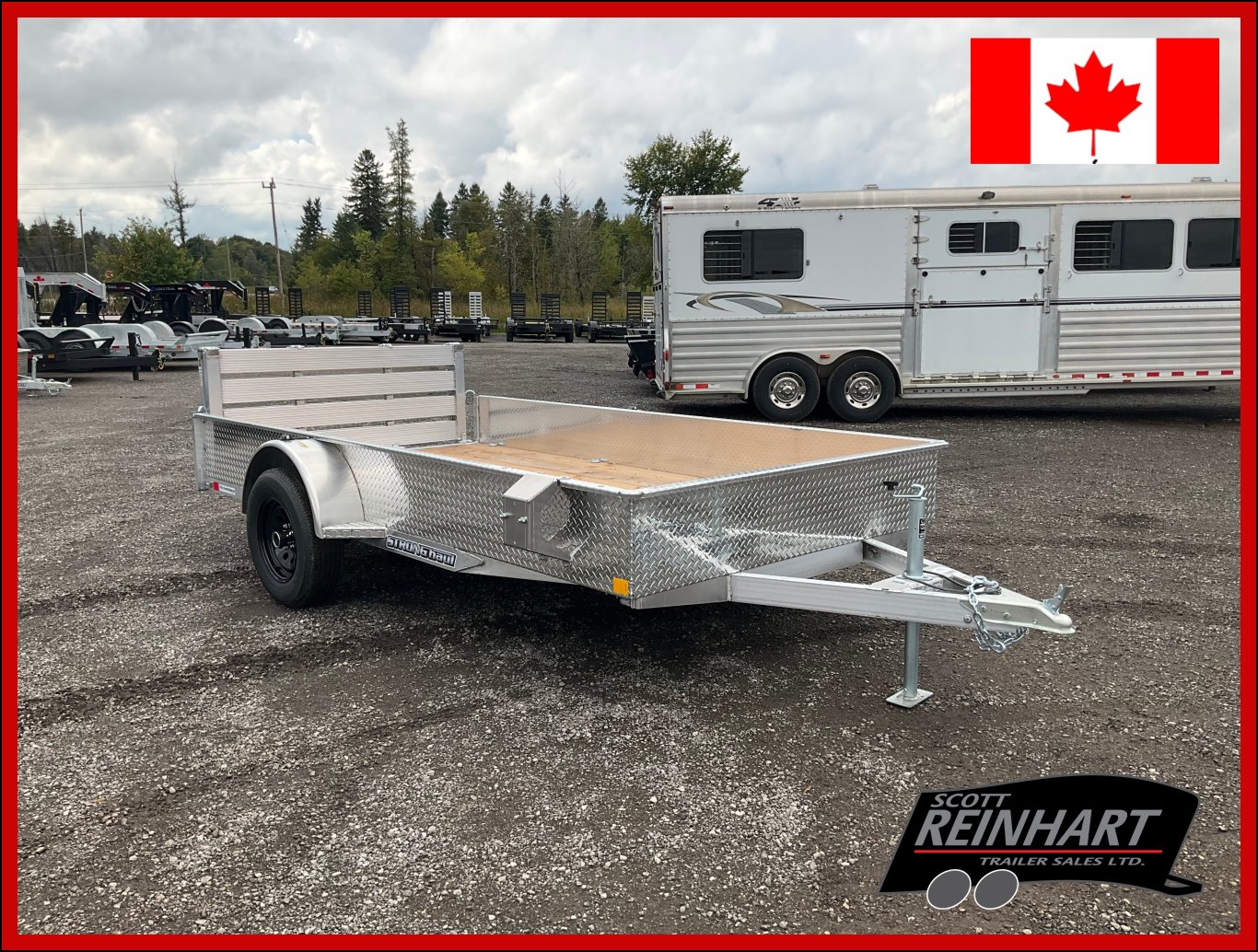 2990LB GVWR, 3500LB Spring Idler Axle, 15 Inch Radial Tires, All Aluminum Frame, 13 Inch Side Height, 2 Inch Coupler, LED Lighting, Enclosed Wiring, 5K A-Frame Mounted Drop Leg Jack, 2x10 Plank Flooring, Folding Rear Ramp, 8 2000LB Tie Downs, Spare Tire Mount