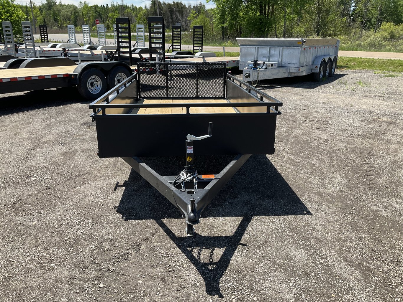 2990LB GVWR, (1) 3500LB Axle with Easy Lube Spindles, Double Eye Spring Suspension, 15 Inch Radial Tires, 2 Inch A-frame Coupler, 2000LB A-frame Jack, 17 Inch Deck Height, 16 Inch Solid Steel Sides + 3 Inch Tie Rail, Bi-Fold Mesh Ramp, Pressure Treated Plank Deck, 42 Inch Tongue Length, (4) Welded In D-rings, Spare Tire Mount, Rubber Mounted Sealed LED Lighting, Fully Sealed Wire Harness, Powder Coat Painted with Scorpion Stone Guard on Front |