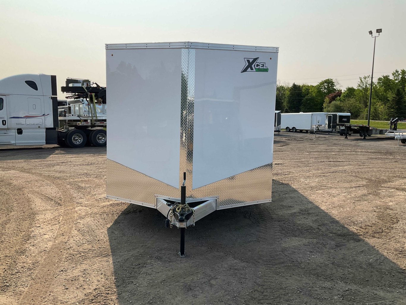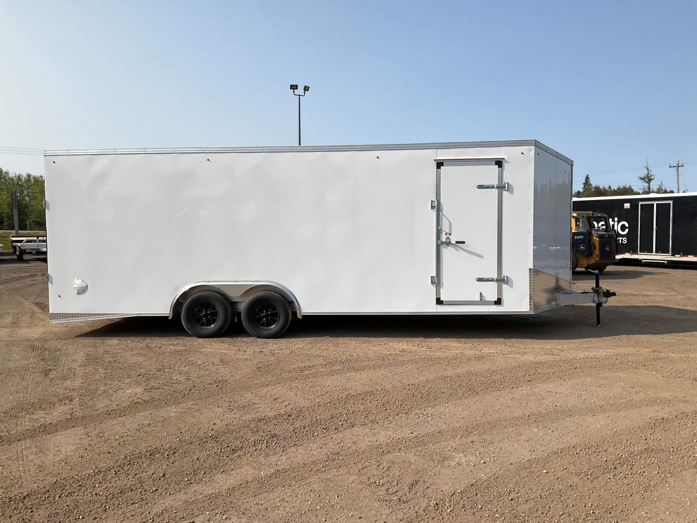 7000LB GVWR, 2 3500LB Spring Drop Axles with EZ Lube Hubs, Electric Brakes on Both Axles, 15 Inch Radial Tires, Aluminum Rim Upgrade, 34 Inch Sloped V-Nose, 7' Tall, 32 Inch Side Man Door, Rear Ramp Door with Cable Assist and Transition Flap, 48 Inch Integrated Beaver Tail, 3/8 Inch Wood Lined Walls, 3/4 Inch Marine Grade Floor, 16 Inch On Centre Walls and Floor, Seamless Aluminum Roof, 2 Wall Vents, 12V Dome Light and Switch, 4 D-Ring Tie Downs, ATP Stone Guard, 2-5/16 Ball Coupler, A-Frame Tongue Jack with Sand Pad, Sealed LED Lighting |