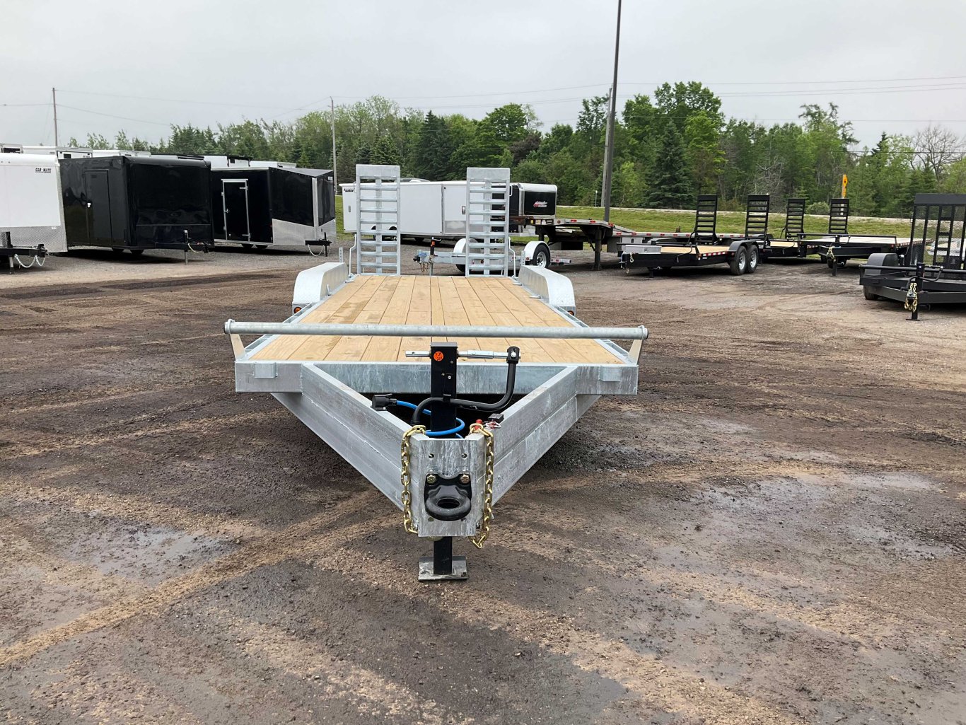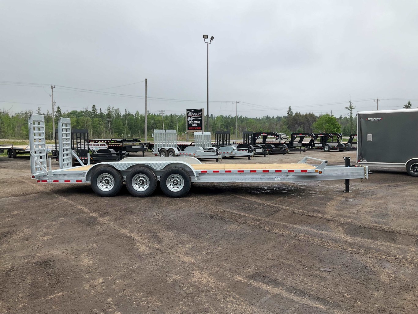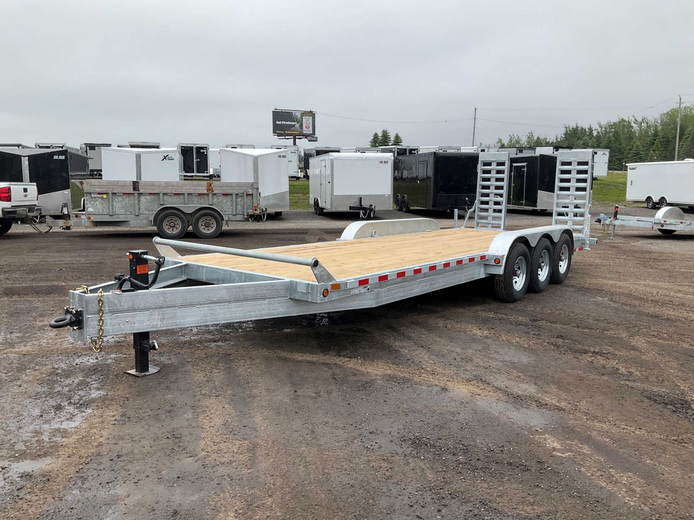 21,000LB GVWR, 3 7000LB Axles with Easy Lube Spindles, Slipper Spring Suspension, 16 Inch Radial Tires, Galvanized Rims, Electric Brakes on All Axles, 12,000LB Drop Leg Jack, 24 Inch Deck Height, 2' Beavertail with Wood Floor, 5' Spring Assisted Upright Ramps, Pressure Treated Wood Floor, HD Treadplate Fender Upgrade, Rear Stabilizers, 52 Inch Tongue Length, Stake Pockets and Rub Rails, Spare Tire Mount, Rubber Mount Sealed LED Lighting, Full Sealed Wire Harness, Galvanized |