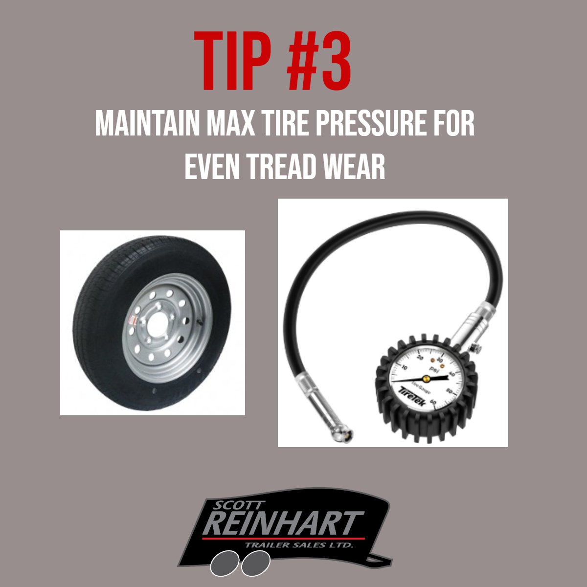 Maintain max tire pressure for the most even tread wear. Avoid when possible storing your trailer on grass as the moisture could cause the tires to warp and crack over time. We have a large selection of trailer tire and rims when the time comes to replace them.