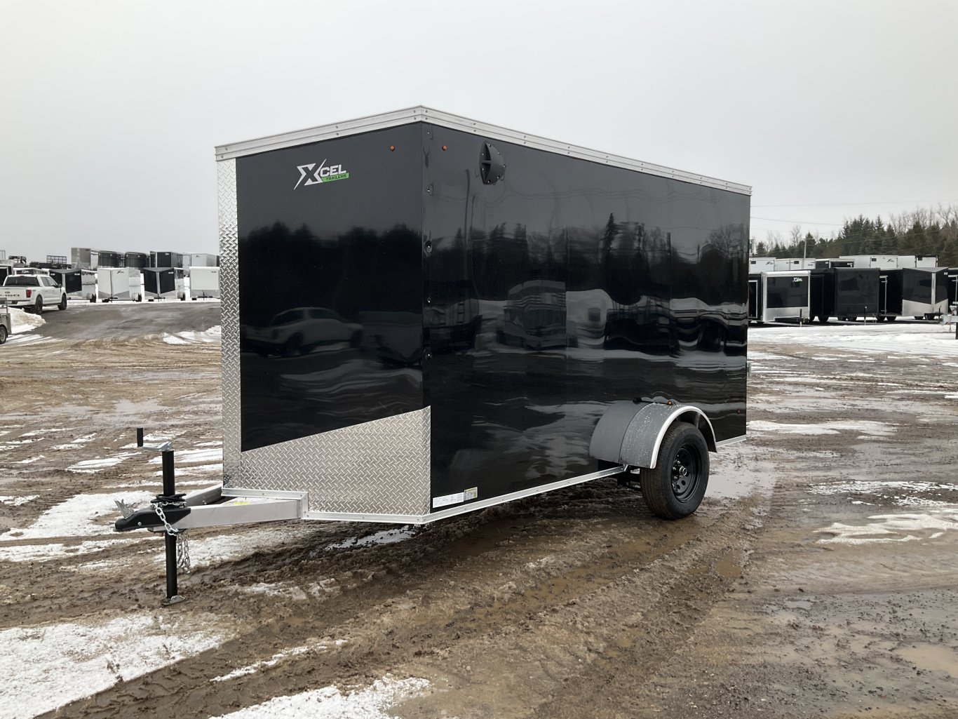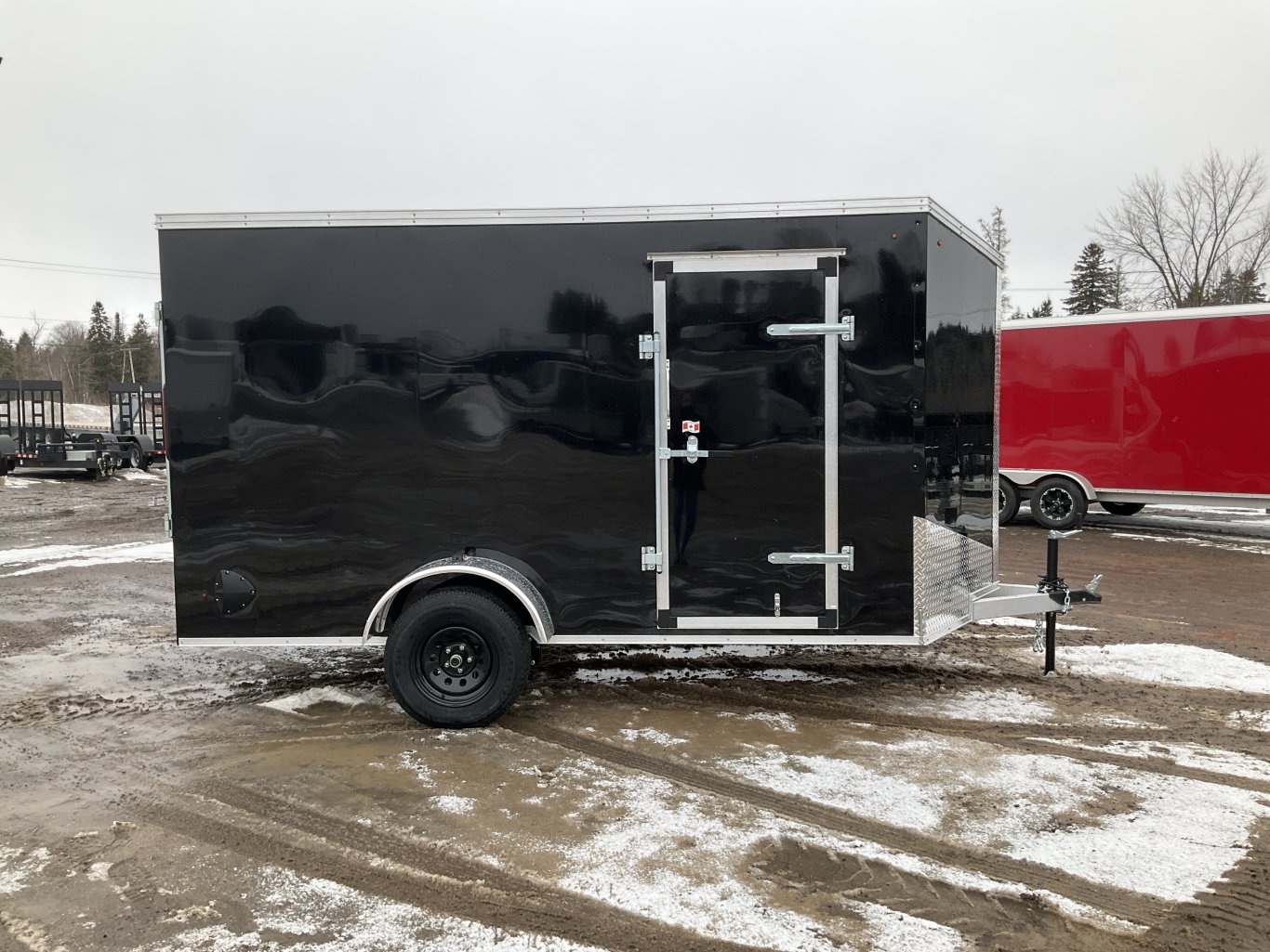 2990LB GVWR, 3500LB Spring Drop Axle with EZ Lube Hubs, 15" Radial Tires, 6'6" Tall, 2' Sloped V-Nose, .030 Black Screwless Exterior, 32" Side Man Door, Rear Ramp Door with Spring Assist, 3/8" Wood Lined Walls, 3/4" Rainblock Wood Floor, Seamless Aluminum Roof, 16" On Centre Walls/Floor/Roof, 2 Wall Vents, 12V Dome Light and Switch, ATP Stone Guard, 2" Ball Coupler, A-Frame Tongue Jack with Sand Pad, Sealed LED Lighting |