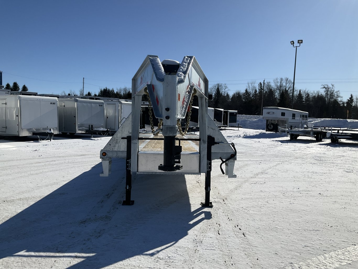 30,000LB GVWR, 2 15,000LB Axles with Oil Bath Hubs, 17.5 Inch Radial Tires, Electric Brakes on Both Axles, Adjustable Gooseneck Coupler, 12,000LB Drop Leg Jacks, 5' Full Width Ramps, 5' Angle Iron Beaver Tail, Crossmembers Every 16 Inches, 36 Inch Deck Height, Pressure Treated Wood Floor, 9' Gooseneck Length, Stake Pockets and Rub Rails, 2 Side Steps, Winch Track, Spare Tire Mount, Spare Tire, Sealed LED Lights, Sealed Harness, Galvanized |