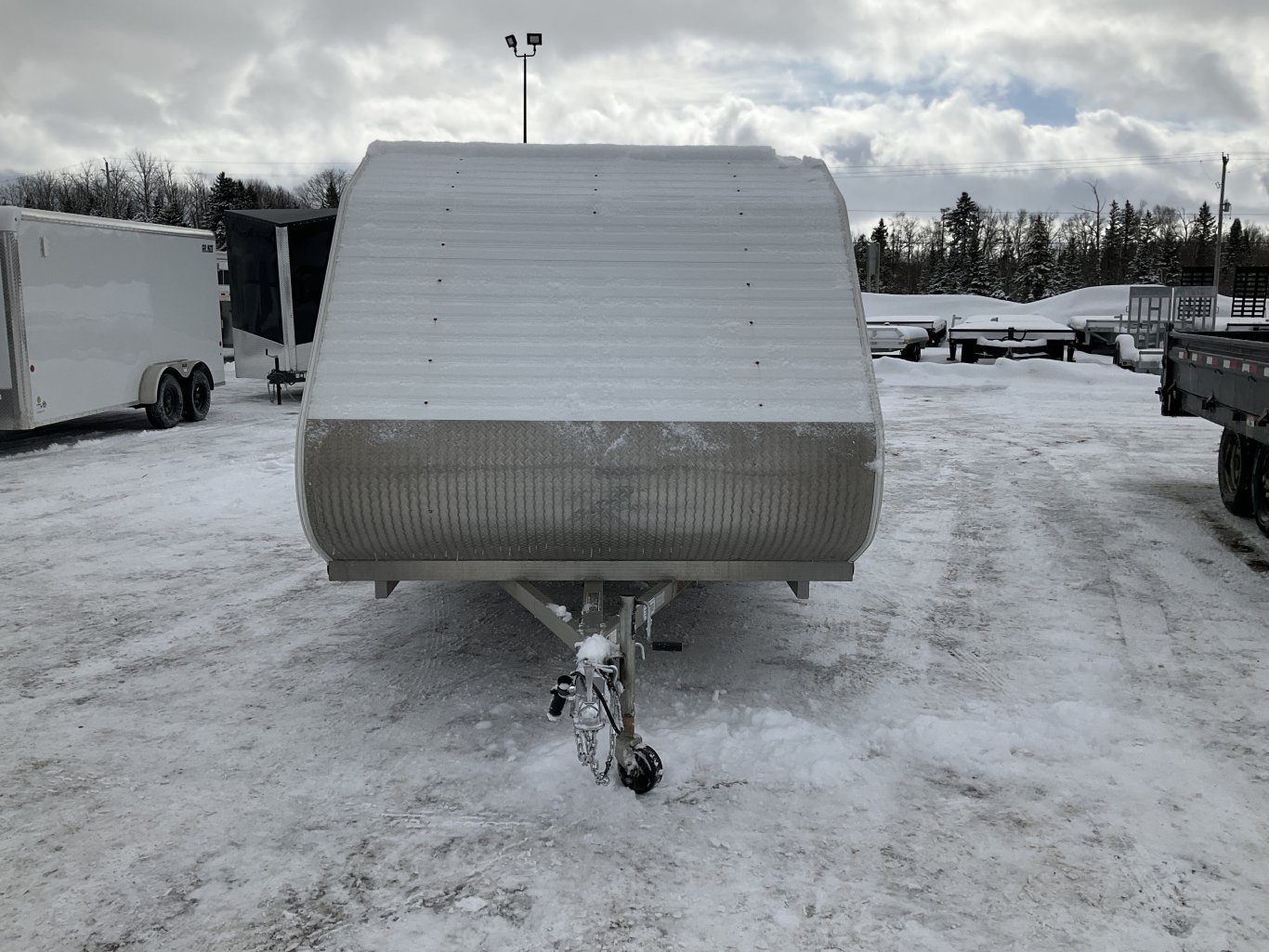 2990LB GVWR, Brand New 3500LB Galvanized Torsion Axle, Brand New 14" Radial Tires, Aluminum Rim Upgrade, White Exterior with Minimal Screw Design, Side Man Door, Rear Ramp Door with Tapered Approach, Marine Grade Plywood Floor and Kick Panel, 2 Rows of Quickslide Track in Floor, 2 Adjustable Ski Bars, 2 Wall Vents, 12V LED Dome Light, Ski Guide Package, 6 8840 Tie Plates, Spare Tire and Rim, Spare Tire Mount, White Interior Wall Liner, Swivel Wheel Tongue Jack, Sealed Wiring and LED Lighting, Premium Fit and Finish |