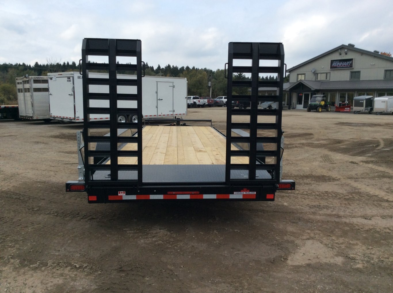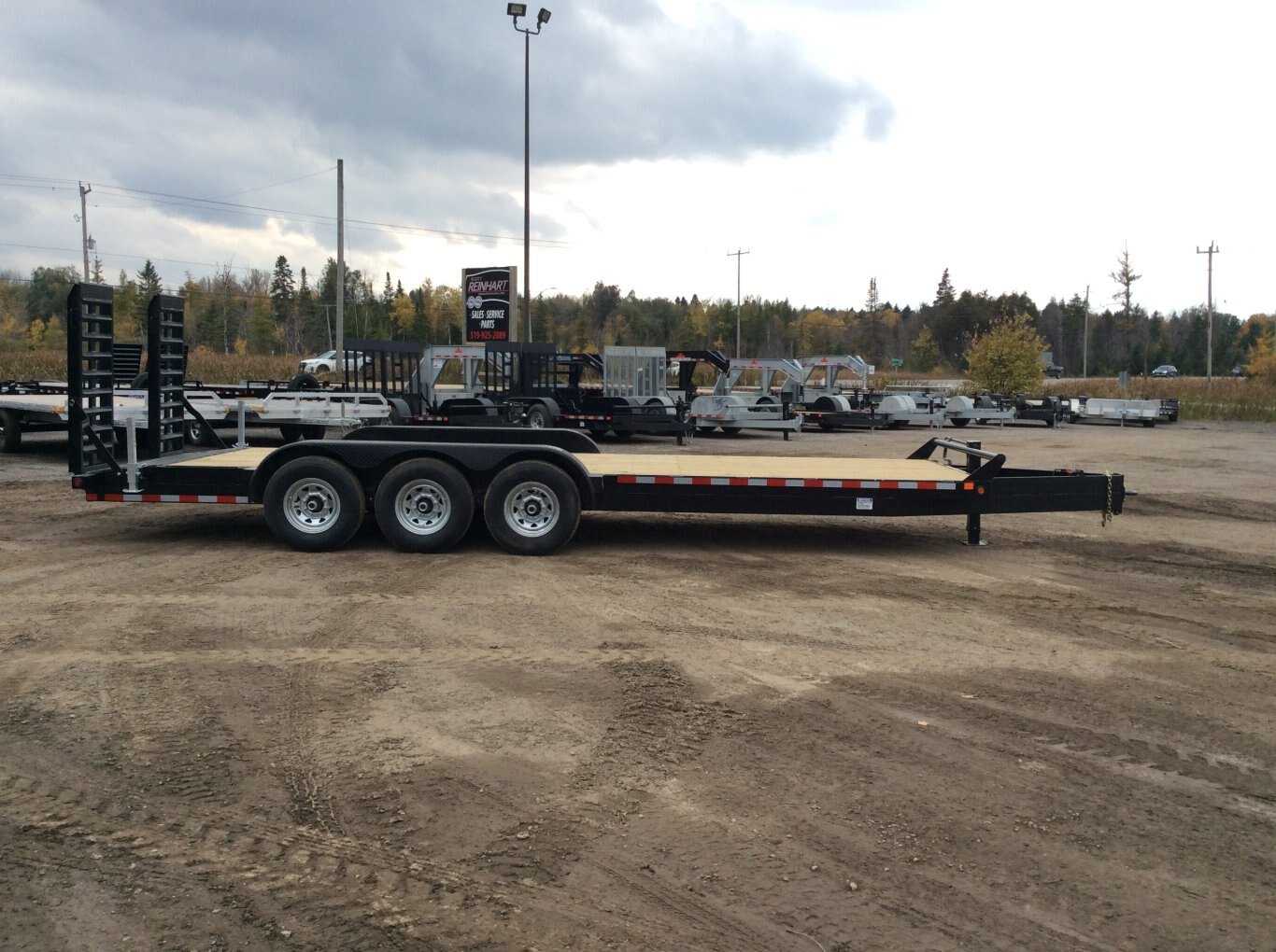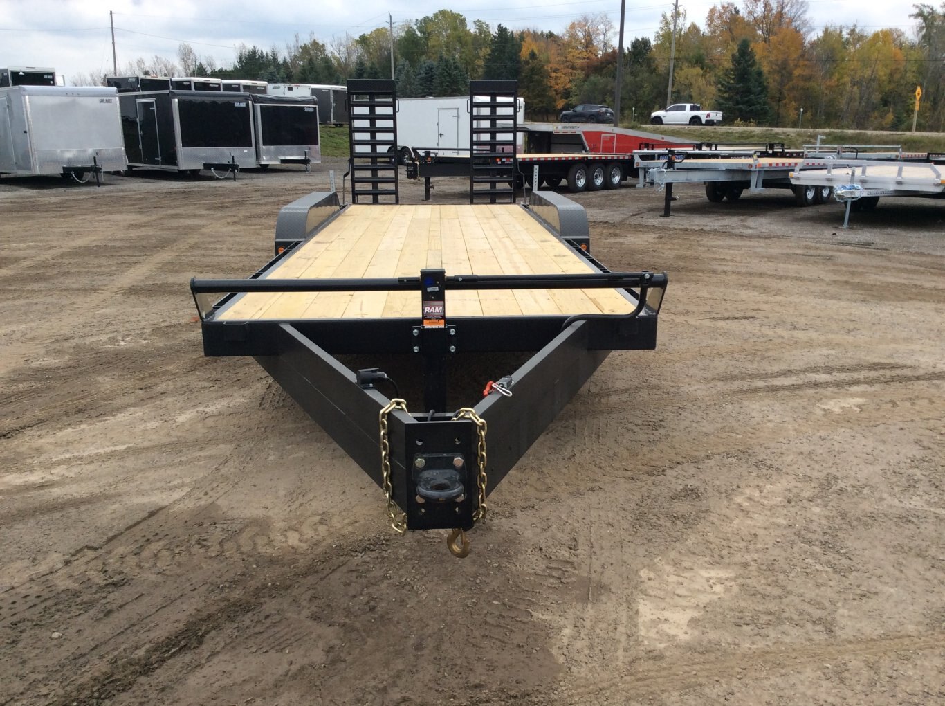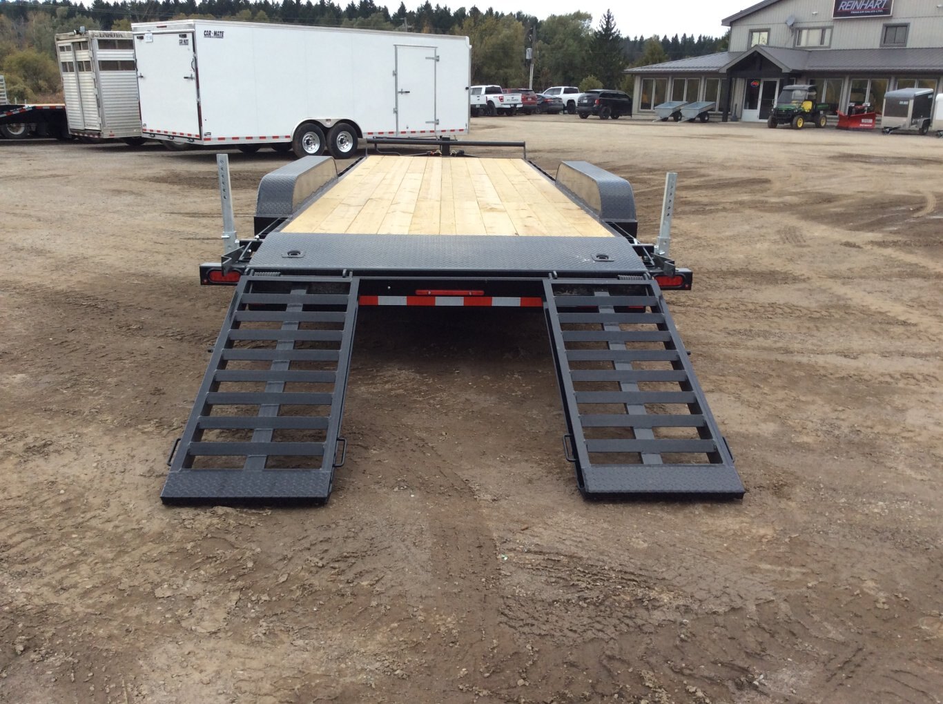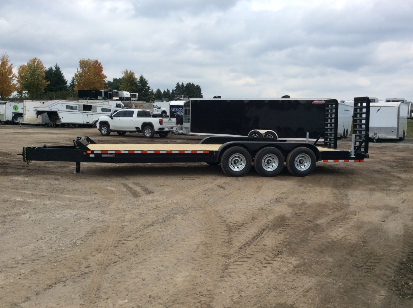 22,680LB GVWR, 3 7000LB Axles with Easy Lube Spindles, Slipper Spring Suspension, 16 Inch Radial Tires, Electric Brakes on Both Axles, 24 Inch Deck Height, 2' Beavertail with Wood Floor, 5' Spring Assisted Upright Ramps, Pressure Treated Wood Floor, 52 Inch Tongue Length, Stake Pockets and Rub Rails, Spare Tire Mount, Rubber Mount Sealed LED Lighting, Full Sealed Wire Harness, Powder Coat Painted with Scorpion Stone Guard on Front