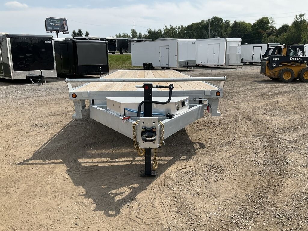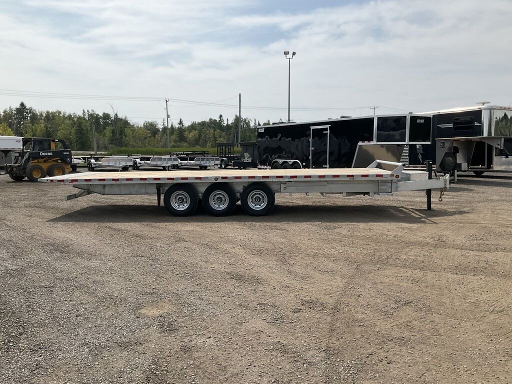 22,680LB GVWR, 3 7000LB Axles with Easy Lube Spindles and Slipper Spring Suspension, 16 Inch Radial Tires, Electric Brakes on All Axles, 12,000LB Drop Leg Jack, Electric Over Hydraulic Full Tilt, Power Up/Power Down Tilt, 5 Inch Hydraulic Cylinder, Interstate Extreme Cycle Battery and Plug In Charger, Lockable Aluminum Toolbox, 62 Inch Tongue Length, 7 Inch Channel Tongue, 7 Inch Channel Lower Main Frame, 10 Inch I Beam Inner Main Frame, Upper Deck 5 Inch Channel Outer Frame, 3 Inch Crossmembers Spaced 16 Inch On Centre, 24 Inch Checkerplate Knife Edge, 36 Inch Deck Height, Pressure Treated Wood Floor, Stake Pockets and Rub Rails, Spare Tire Mount, Rubber Mount Sealed LED Lighting, Full Sealed Wire Harness, Galvanized